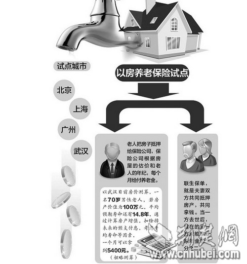 昨日,楚天金报记者获悉,已有保险公司收到保监会《关于开展老年人住房反向抵押养老保险试点的指导意见(征求意见稿)》(下称《征求意见稿》)。《征求意见稿》显示,除北京、上海和广州被纳入试点外,武汉成为唯一纳入试点的二线城市,试点自正式文件发布之日起至2016年3月31日止。