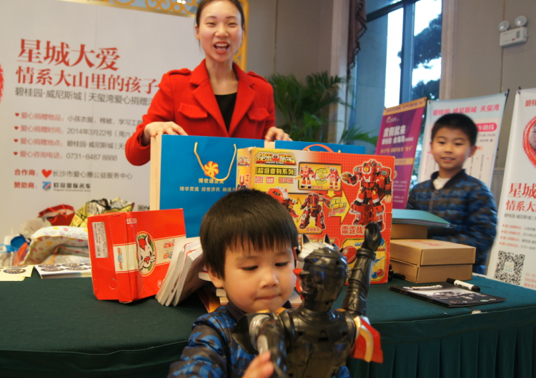 活动现场,5岁的小星引起了记者的注意。在捐助台前,他依依不舍地捐出了自己的“宝贝”。小星说:“听妈妈说了山区里小伙伴的故事,我觉得这个变形金刚能给她们带去超能力!”