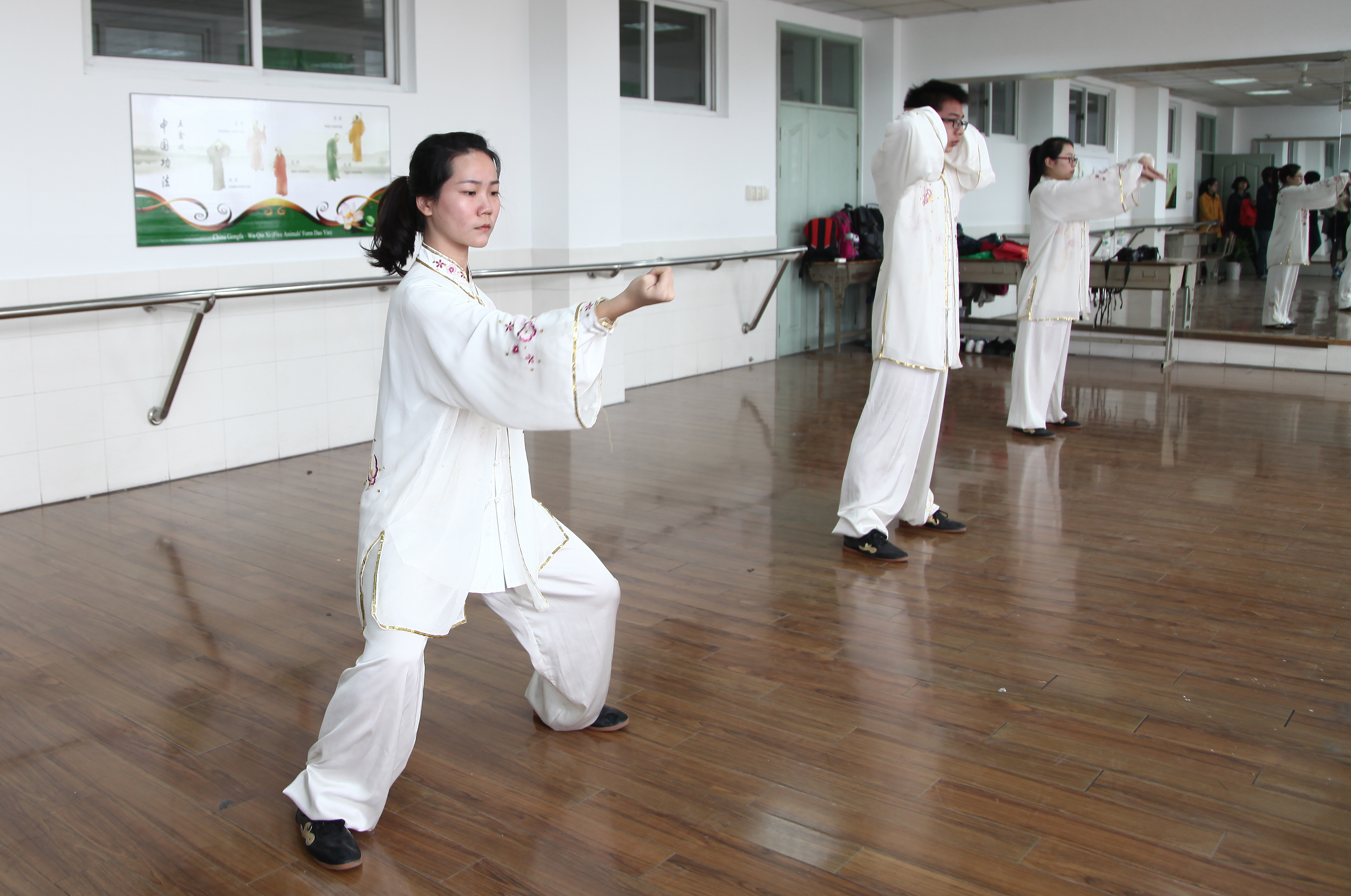 南京中医药大学的学生展示太极拳法