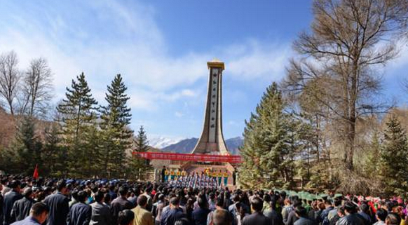 敬献花篮,默哀,鞠躬,重温入党誓词……纪念碑前,近千名中小学师生缅怀先烈,立下发愤学习、报效祖国的决心。人们没有忘记,77年前的3月12日,红西路军将士进入裕固族居住区,在斗争残酷、环境恶劣的艰苦条件下,克服艰难险阻,浴血奋勇杀敌,用鲜血和生命矗立起革命英雄主义丰碑。