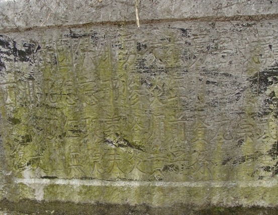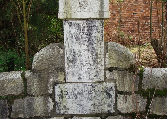 这是一个在当地很常见的用条石垒起的坟圈,坟圈很小,就在一村级机耕路旁,坟墓后面紧挨着一户人家的墙壁。将军的墓碑镶嵌在坟圈的条石之中,斑驳的墓碑上可以看到“抗日阵亡革命烈士黄红墓,邵东县人民政府,1992年6月立”等字样。