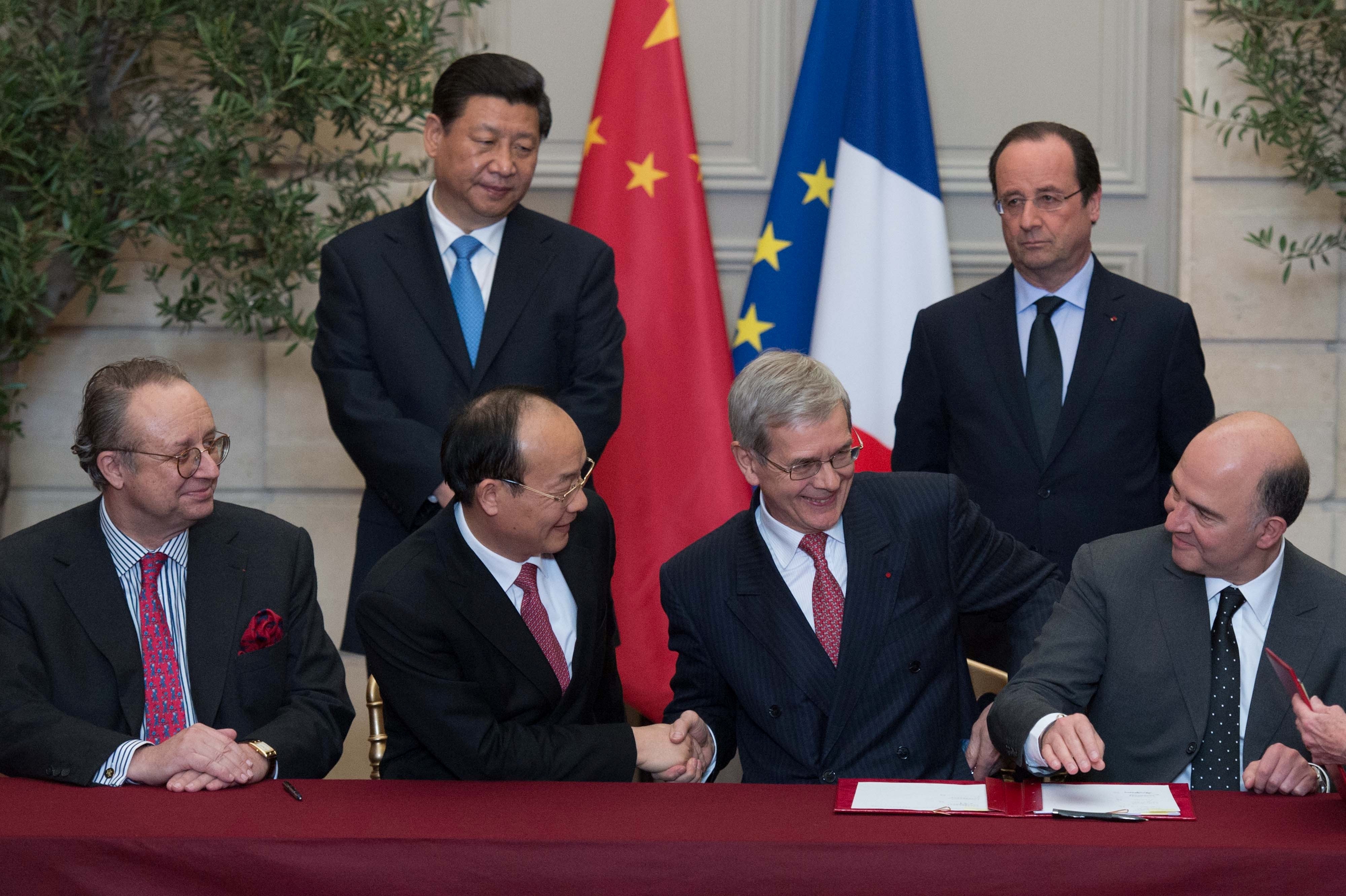 中国国家主席习近平、法国总统弗朗索瓦.奥朗德共同出席签字仪式。