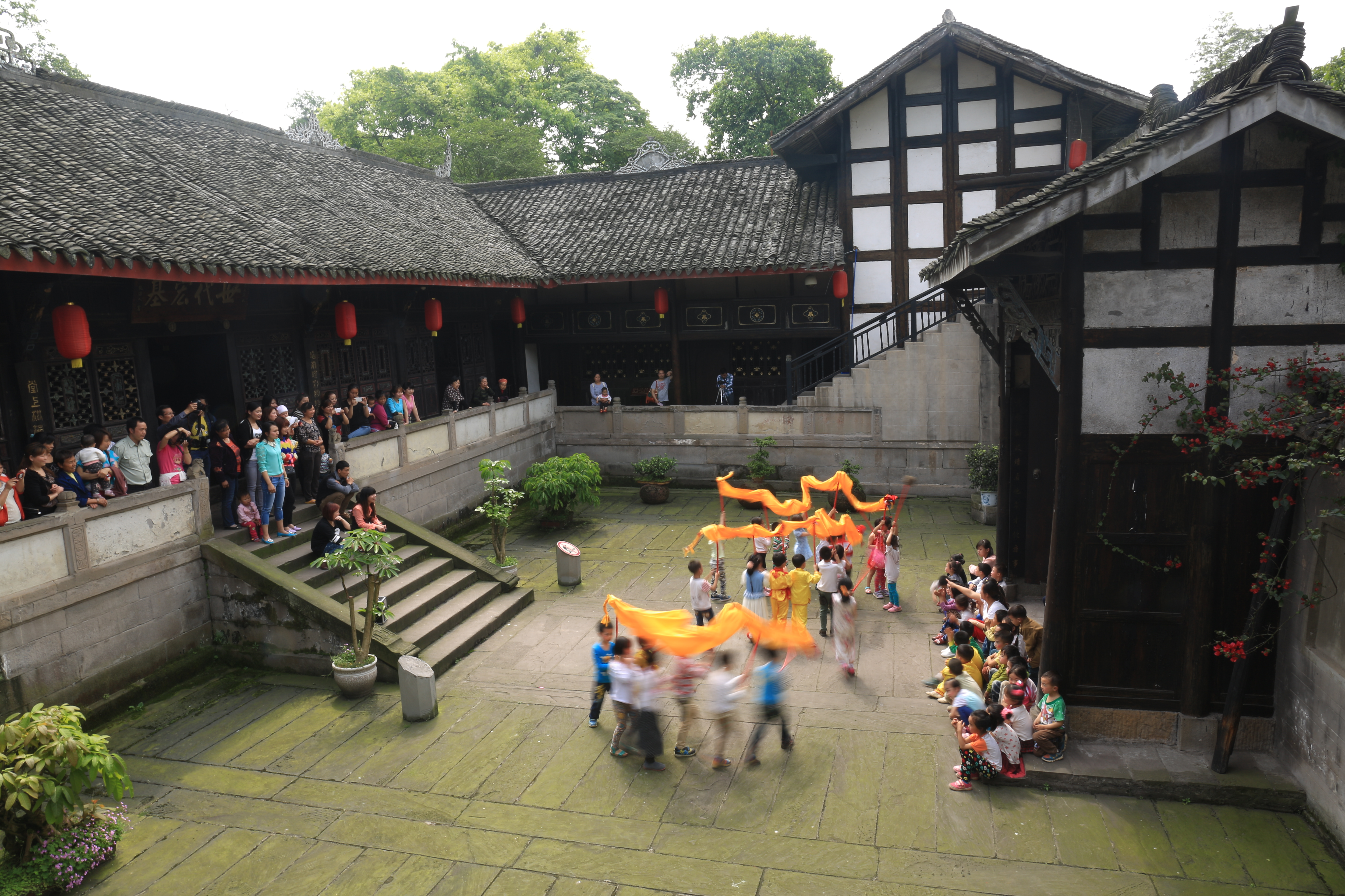 【香港商报讯】记者梅超、通讯员陆永忠摄影报道“八只老鼠抬花轿呀抬花轿,四只老鼠来吹号呀来吹号,两只老鼠放鞭炮呀放鞭炮,吡呖叭啦、吡呖叭啦、嘣叭。老猫听了来贺喜,‘恭喜!恭喜!’一口一个全吃掉呀全吃掉。”4月23日,在“中国婚俗文化基地”四川江安县夕佳山古民居,一场由夕佳山镇幼儿园的娃娃们表演的民间婚俗游戏正在进行。