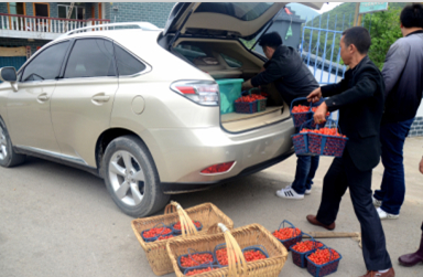 记者在樱桃园内,已有不少市民自驾车前来采摘樱桃。在路边,不少果农还把刚采摘下来的新鲜樱桃摆在路边出售,虽然售价在10元至15元一斤,但不少市民还是经不住樱桃的诱惑,纷纷解囊买来尝鲜。