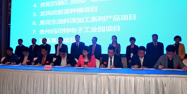 [香港商报讯] 记者 黄庆松 报道:4月30日,2014贵州(贵阳)台湾名品博览会配套主体活动之一,贵州·台湾投资贸易合作恳谈会暨签约仪式在贵阳举行。现场集中签约茶叶种植与加工、贵州玛司特电子工业园、农业生态观光园等24个投资类项目,总金额8.26亿美元。