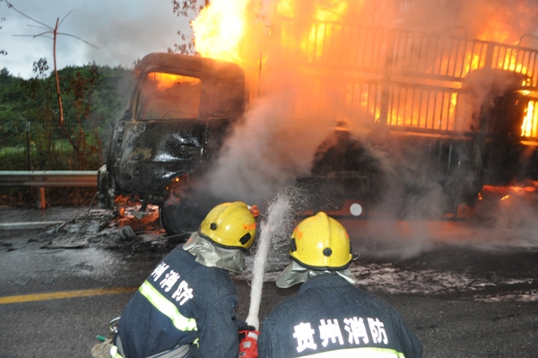 [香港商报讯] 记者 黄庆松 通讯员 李卓 报道:5月4日,记者贵州省毕节市黔西县消防获悉,4日早上6时许,贵州省贵毕公路黔西县钟山至素朴路段发生一起货车自燃事故,装载的汽车配件被全部烧毁,损失约50余万元人民币。同时造成交通中断3个多小时,上百辆车辆滞留。