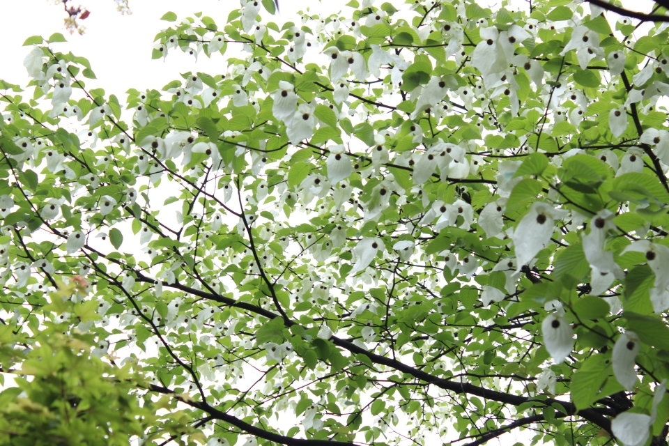 在四里坡森林里,空气清新、游人如织,人们纷纷上山一睹珙桐花开的美景。只见一株株青枝绿叶的珙桐树上,点缀着许多白色的花朵,一朵朵珙桐花呈短圆形或卵形,白如玉, 轻似纱,远远望去,活像无数只飞舞的白鸽落枝头,神态十分美丽,让人喜爱。