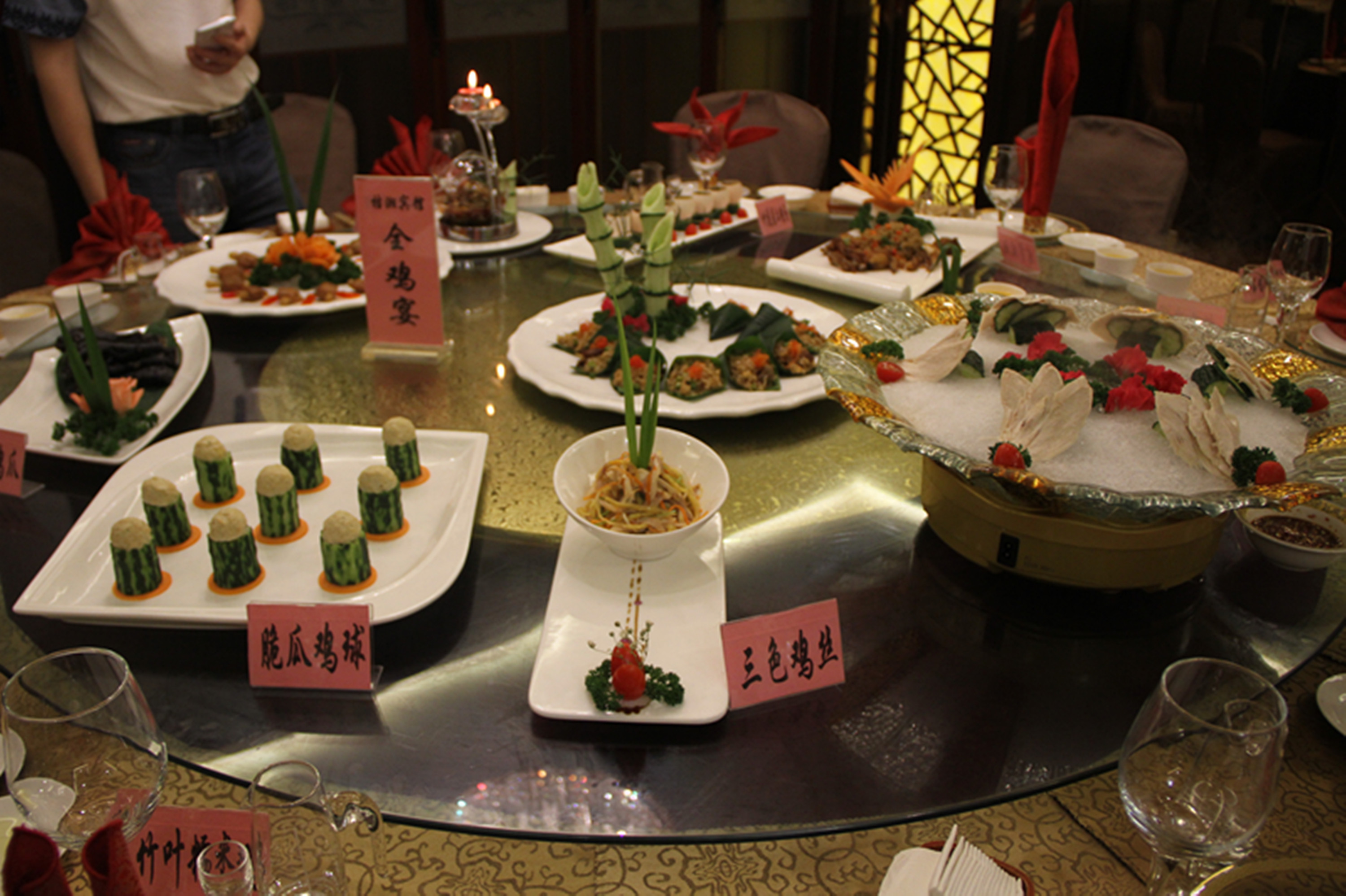 现场厨师透露,长宁县不但有“全竹宴”,还有特色的“全鸡宴”。 “全鸡宴”以炖鸡、炸鸡、烧鸡、烤鸡、凉拌鸡、卤鸡爪、炒鸡杂等“鸡”菜品汇聚而成。可谓满桌皆是鸡,无鸡不成席,令人大开眼界、垂涎欲滴。“全鸡宴”共计有十多个大类上百个菜品,每一道菜都与“鸡”有直接或间接的联系,从鸡头,到鸡翅、鸡腿,再到鸡的内脏都得到充分利用。醇香脆嫩,风味独特,让人垂涎欲滴。除富含各种人体必需的氨基酸外,更是高效抗癌的良好药物,为八方游客所喜好。“全鸡宴”的各个大类又有许许多多的烹饪方法,根据厨师的技艺和消费者需求,可烧、炖、炒、烤、蒸、煲、烩、凉拌等等。