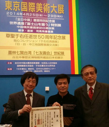 【香港商报讯】(记者刘佑祥、孙贤亮)全日第20届世界美术大展于4月30日在东京都美术馆落幕。此次大展规模空前,来自世界600多位艺术家参加了此次大展。各国众多艺术大师纷纷参展。来自中国中央电视台的剧作家农奴先生获得了书法艺术金奖。