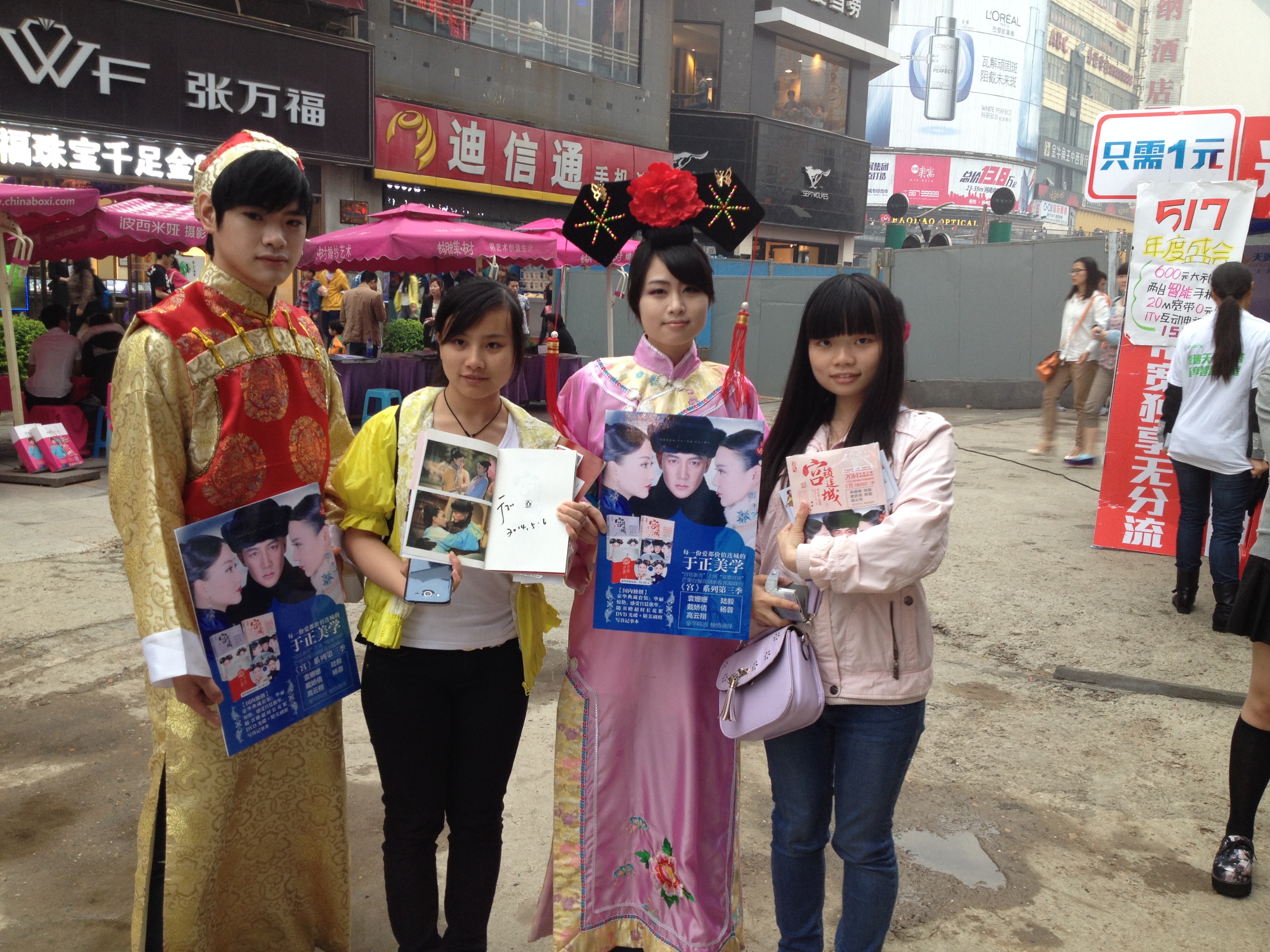 【香港商报讯】近日,电视剧《宫锁连城》中人物“宋连城”和“富察恒泰”从清朝穿越回来,出现长沙五一广场地铁口,引得无数路人围观。
