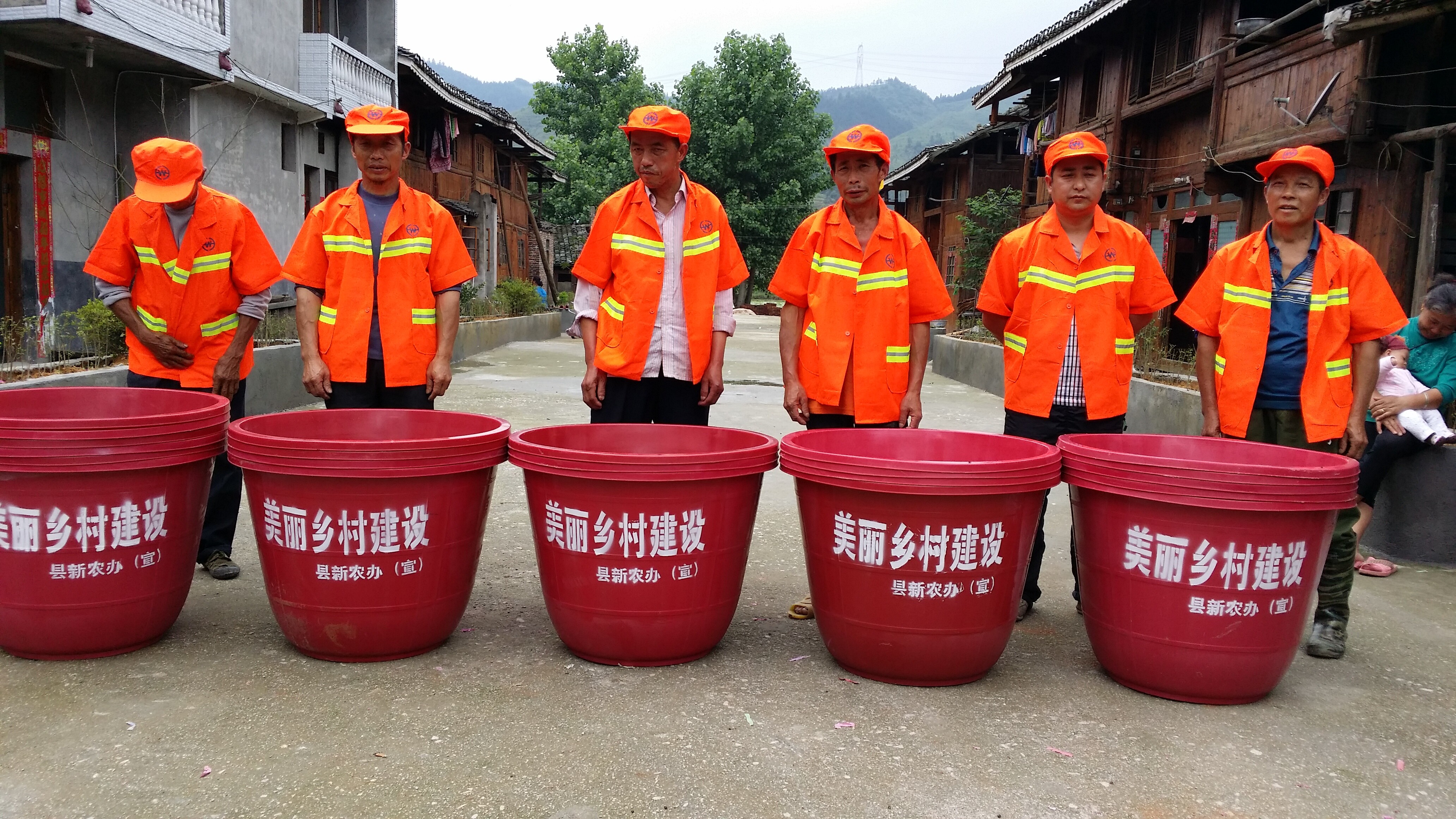 5月25日,在贵州省黎平县敖市镇三多村,一支由当地群众自发组成的村环卫清洁队正式成立。该队目前共有成员9名,主要负责对村寨公共道路进行清扫、垃圾清运、焚烧和对村民环境卫生行为进行监督。此举将大大改善当地卫生环境脏乱差的现状。图为三多村环卫清洁队。(杨代富 康中菊 吴义春 摄)