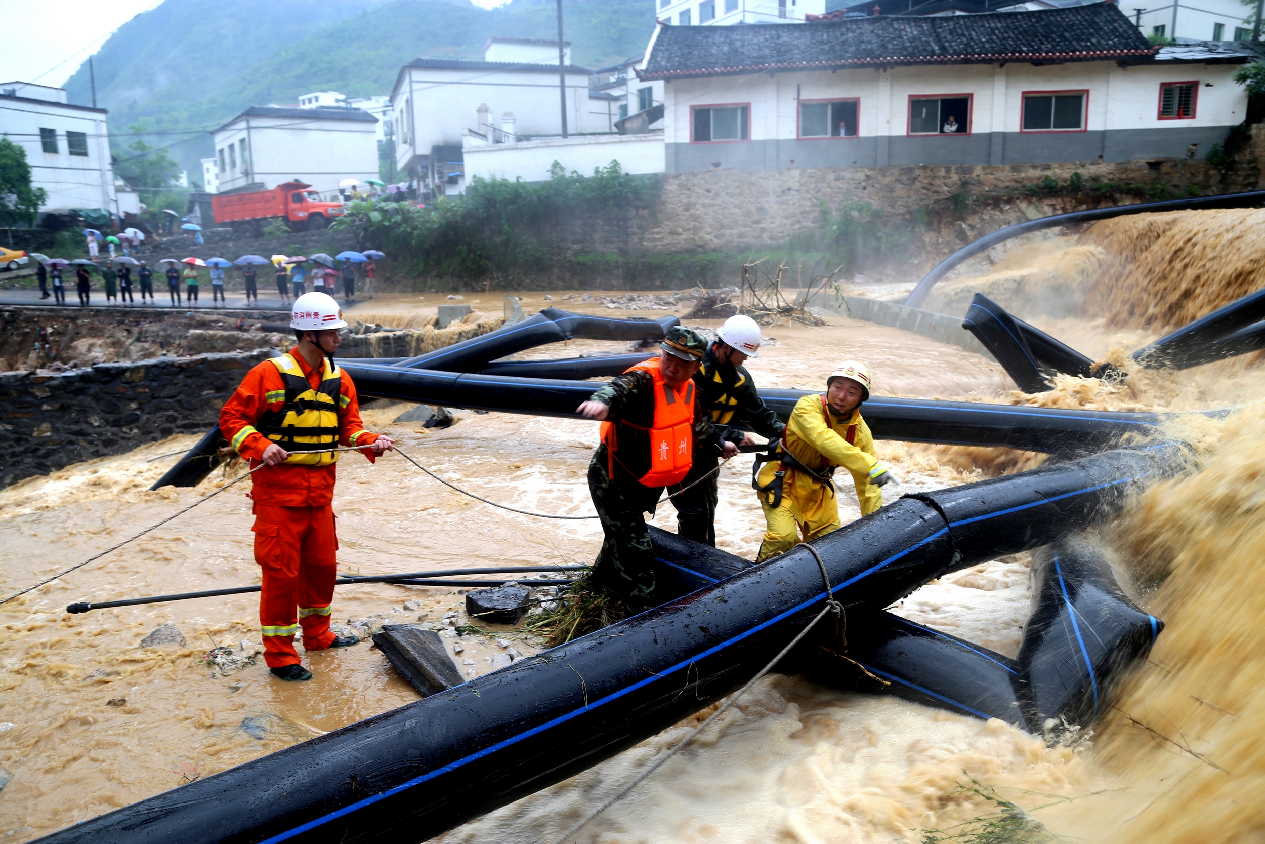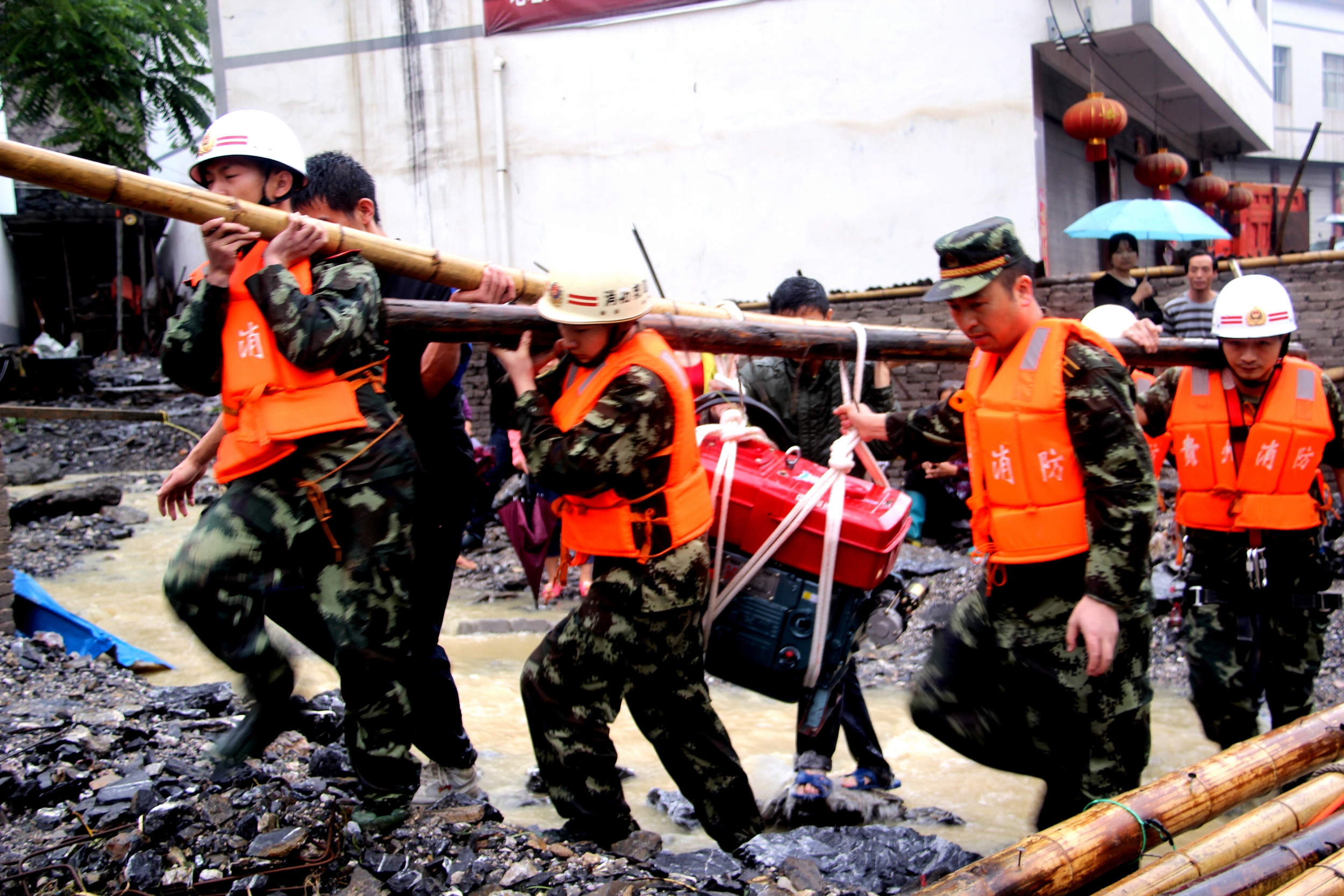 此外,山洪还袭击了电站,发电机厂房全部进水,无法正常启动,如不及时泄洪,上游乡镇和村庄将有被洪水吞噬的危险,在相关部门的多方努力下,消防官兵利用肩扛,将发电机抬至路况良好的地带,方便供电部门架接线路,利用发电机将电站阀门开启泄洪,截止下午17时,电站阀门成功开启,道路清理全面恢复通车。