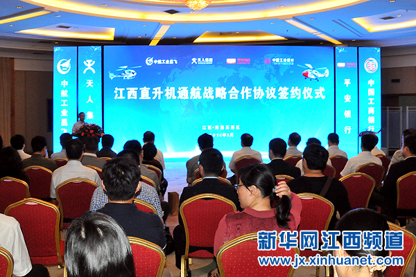 新华网江西频道5月26日电(陈子夏 肖模浩) 5月26日,江西天人集团与中航工业昌飞飞机工业(集团)有限责任公司(简称中航工业昌飞集团)直升机通航战略合作暨AC311、AC313型机购销合同签约仪式在南昌举行。根据合同和协议,天人集团将向中航工业昌飞集团采购6架AC311、2架AC313国产民用直升机,今后江西省森林防火、农林虫害防治、电力巡线、救援、旅游、公务等多个领域都可使用本土生产的直升机。