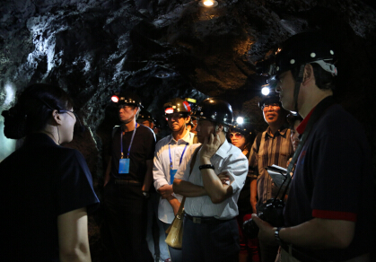 11日上午,在结束晋祠的采风行程后,作家采风团专程来到中国煤炭博物馆,进行了一次煤海探秘。作家饶有兴趣地在煤博的“七馆一井”进行参观,并头戴矿灯,下到模拟矿井,当了一回煤矿工人。