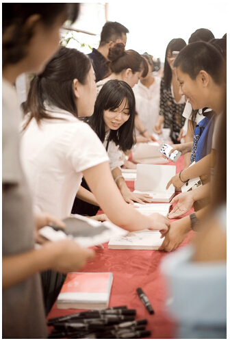 等待签售的学生排起了长龙