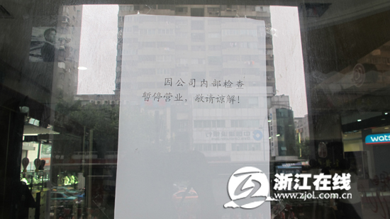 网传中都百货杭州庆春店和余杭临平店今天关门停业。记者随即赶往杭州庆春路上的中都百货商店,发现大门紧密,玻璃门后贴了几张内容相同的告示,称“因公司内部检查暂停营业,敬请谅解!”不过记者仔细查看后发现,这些告示既无落款,也未加盖任何公章。>>>相关新闻: 《中都百货 号称要做杭州第一家社区邻里型时尚百货》