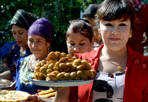 当日,在新疆伊宁县巴依托海乡上塔依尔于孜村,举行了一场以“民族团结”为主题的庭院文化系列活动。包括维吾尔族、哈萨克族、回族、汉族在内的各族农牧民们聚集在一起,表彰“民族团结模范”,评选“最美庭院”,品尝传统美食,表演文艺节目,载歌载舞,其乐融融。