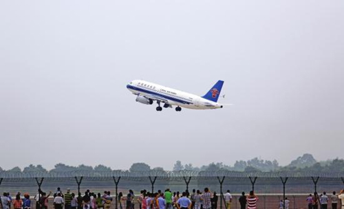 南航A320客机从湖南衡阳南岳机场起飞至深圳.
