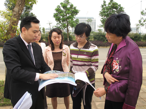 广西投资促进局杨静华局长(右二)到项目建设工地调研,协调推进项目建设进程