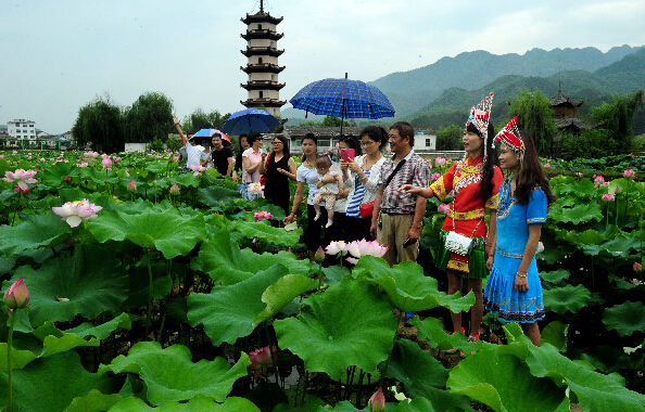 浙江武义柳城畲族镇种植莲子、荷花历史悠久,该镇的十里荷花景区博览园是武义县着名的赏荷之处。近日,该园今年新引进的“唐招提寺莲”“绿之星”“红娘”“大龙珠”等多个荷花新品种逐渐开放,成了畲乡特色旅游的新亮点。
