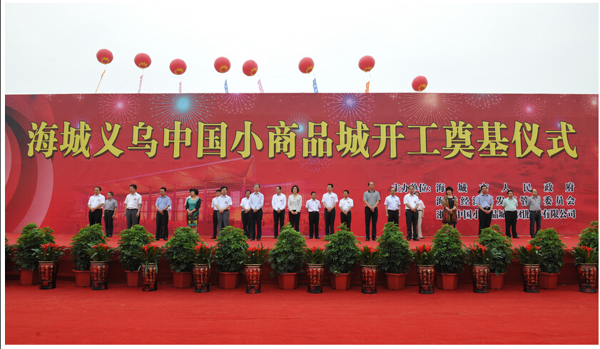 海城义乌中国小商品城项目项目位于辽宁海城经济开发区西柳镇境内,规划用地面积286.9公顷,总投资110亿元人民币。其中一期项目主要建设小商品专业市场和配套商业设施,经营品种囊括4000种类50余万种日用小商品。本年内将完成一期主体工程,2016年组市运营。