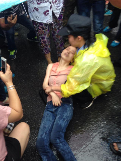 当地女警员照顾伤心过度的家属