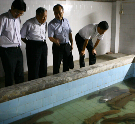 林浩然院士一行来到位于东涌镇的广东省渔业种质保护中心,该中心的娃娃鱼人工养殖基地是建在该镇一个农庄的地下。