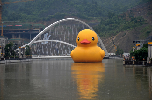 “风靡全球”的大黄鸭在贵州省贵阳市南明河畔