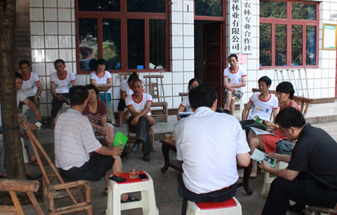 检查组一行与参加项目的村民进行座谈