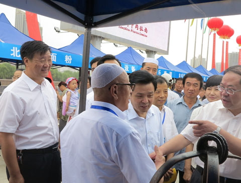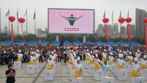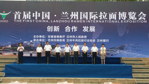 【香港商报讯】记者陈文智报道:7月7 日,在第20届兰洽会举办之际,首届中国兰州国际拉面博览会在兰州体育公园文化广场拉开帷幕。24名拉面师展示拉面技艺,拉出12种形状的兰州拉面,挑战“拉面种类最多的中国·兰州拉面”上海大世界基尼斯纪录。甘肃省商务厅厅长杨志武宣布首届中国·兰州国际拉面博览会开幕,兰州市市长袁占亭,常务副市长俞敬东,旅游局长唐伟尧等领导出席了开幕式。
