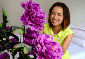 7月21日,在甘肃省漳县大草滩乡新联村,一名农民在自家开办的农家乐里布置客房。