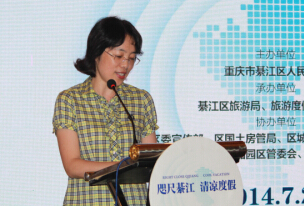 綦江区旅游局局长、旅游度假区管委会主任孙萍推介綦江旅游度假区