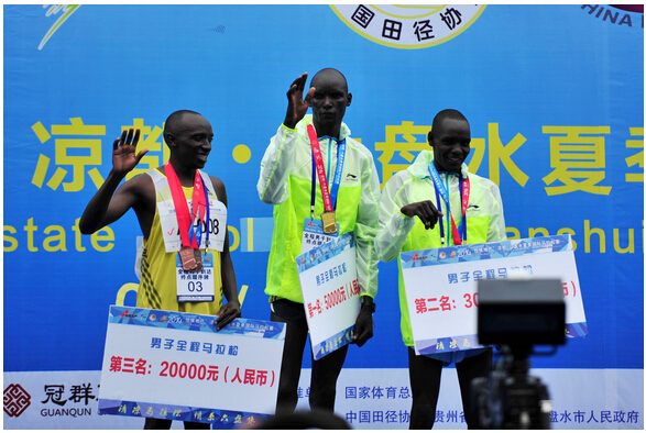 最终,肯尼亚男选手Kigen Charles Kimutai 以2:17'29" 成绩摘得42.195公里全程赛的金牌,Kipsaat Mathew与Willy kariku Mwangi分别夺得银牌和铜牌;女子组中,肯尼 亚选手 Rumokol Elizebath Chepkanan以2:39'50"的成绩摘得金牌,紧随其后的是其同胞Anne Cheptanui Bererwe和Rotich Pa-mela Jepkosgei。根据名次,他们分别获得5万元、3万元及2万元的奖金。另外,在马拉松半程赛中,男子组中国运动员陈刚碧以1:11'41"成绩夺得亚军,六盘水籍运动员罗能夺得该组季军;女子组季军为21岁的贵州都匀籍运动员刘宗桃。该组其余金、银牌仍被肯尼亚选手摘走。