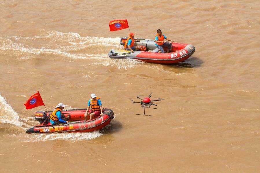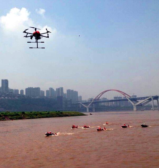 配图2 说明:水上救援队在无人机引导下前往救援地点。