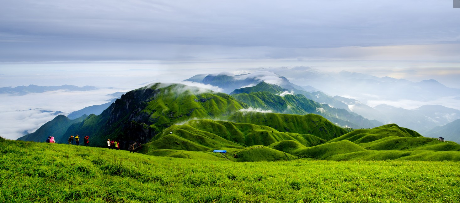 武功山连绵十万亩的高山草甸、红岩峰瀑布群、金顶古祭坛群,堪称江南三大绝景,令人神往。明代地理学家徐霞客冬游武功山,为山中奇景所陶醉,写下了《游武功山》:“千峰嵯峨碧玉簪,五岭堪比武功山。观日景如金在冶,游人履步彩云间。”武功山的高山草甸海拔之高,面积之广在世界同纬度名山中都是绝无仅有的。10万亩草甸绵绵于海拔1600多米以上的高山之巅,穿云入雾,南方人无需远赴边陲,便可领略北国风光,被专家称为“奇山伴草甸,天下一绝。”天地造山,山水纳福。这种仙境般的风光,也为“福山”之意增添了梦幻色彩。在武功山,走过朝仙古道、赐福桥,看过三天门宗教遗址群、玉皇殿、古坛遗址、“仙迳”石刻、观音庙、江南树王、快登天庭等蕴含着深厚文化积淀的景点,祈福,如今仍然是人们来到武功山必做的事情之一。山势巍峨,离天最近。祈愿求福,离心最近。从无怪乎山下安福县的人们也要说:“来安福武功山,游五福山水画。”