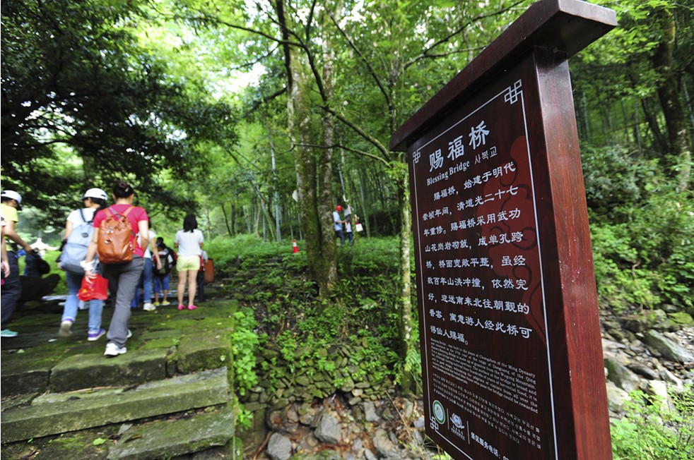 武功山的茂林山水间,有一处三天门太极宫遗址。太极宫是武功山最重要的道教场所,是道教鼻祖葛玄来武功山首开道场的地方,历史上规模宏大,香火十分旺盛。宫前保留有一座建于清道光年间的石拱桥,名曰“赐福桥”,桥面宽2.6米,高3米,跨5米,工艺精湛,美观大方。游人过桥来能得到葛仙的赐福,寓意十分明显。