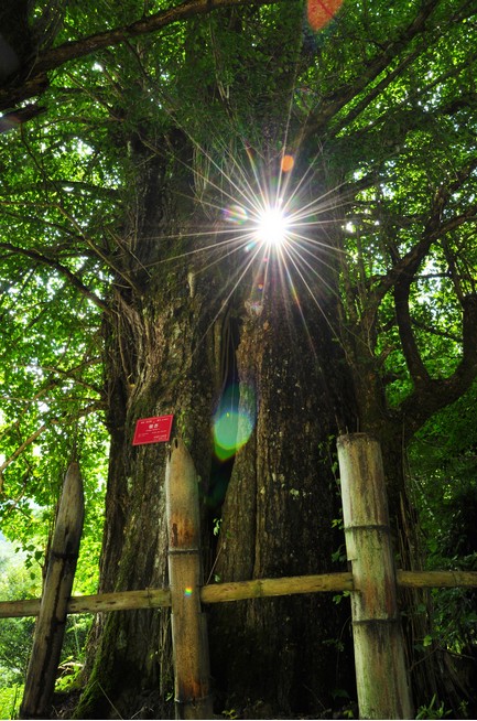 行至图坪庵遗址区域,即现在箕峰景区入口,有一个体形较大的香炉,匾额上书“一路福星”四个大字,愿望亦十分美好,据考测,这里之前应有大的宫观,现仅遗留墙脚。此处有唐朝始栽的两棵银杏树,至今已有1300年,《武功山志》中记载,“东华西实,来年易之”,即今年东边的树开花,西边的树结果,明年则互换过来,很是特别。