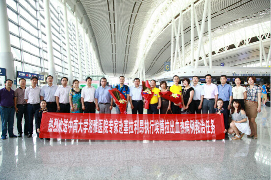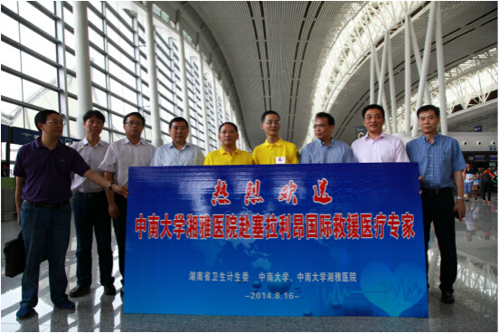 据了解,此次湖南专家组由中南大学湘雅医院重症医学徐道妙教授、感染病科沙新平副教授和长沙市疾控中心主管医师张恒3名专家组成,经过完成各方面的培训、预案和物资准备等程序,他们将前往确诊或疑似感染埃博拉出血热人数最多的塞拉利昂。启程当天,湖南省卫生计生委领导、中南大学党委书记高文兵、湘雅医院党委书记肖平、副院长唐北沙等到机场送行。