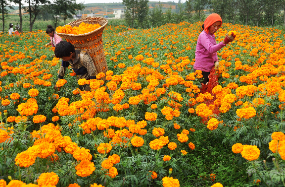 近日,贵州省威宁彝族回族苗族自治县东山凤祥种植专业合作社种植的5000余亩万寿菊喜获丰收。该合作社与制药厂达成“订单销售”协议,菊花由农户采摘后直接送进制药厂,带动当地农户“家门口”增收致富。