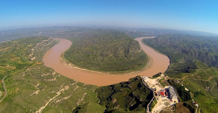 8月19日航拍的山西永和黄河蛇曲国家地质公园乾坤湾。