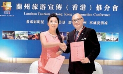 【香港商报讯】记者李挚报道:有「西部夏宫」之誉的甘肃省省会兰州市,昨日在香港湾仔皇朝会举行以「看电影明星、赏西部美景、游金城兰州、享盛夏清凉」为主题的兰州旅游宣传(香港)推介会。该市旅游局副局长金小平图文并茂作旅游推介。会上,兰州市旅游局与香港入境旅游接待协会签订旅游合作框架协议,聘请该会会长林和忠为兰州旅游发展高级顾问、甘肃兰州旅游推广(香港)中心主任。