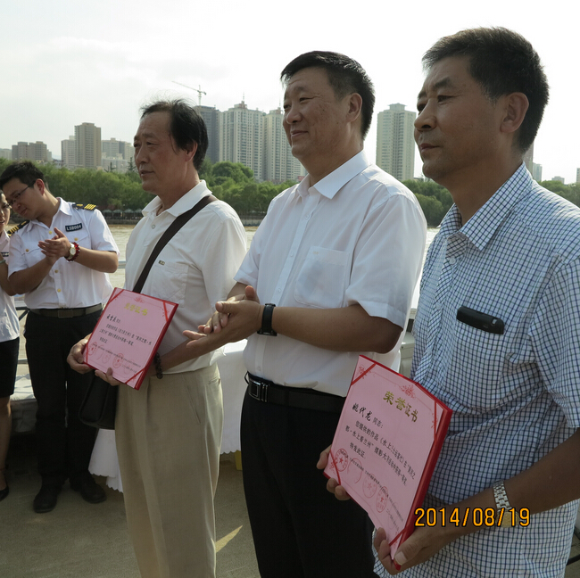 【香港商报讯】记者陈文智报道:19日下午,由兰州市文联、兰州市交通运输局主办的首届“黄河之都”水上看兰州摄影大赛圆满落幕,满载着代表美丽兰州“新视觉”摄影作品的豪华游轮成为了独具特色的颁奖现场,嘉宾们伴随着《黄河之都》那悠扬的歌声尽赏风情线两岸美景。