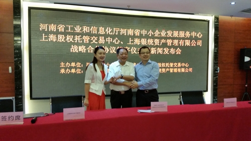 河南省中小企业发展服务中心与上海股权托管交易中心和上海银统资产管理有限公司签署了三方战略合作协议。