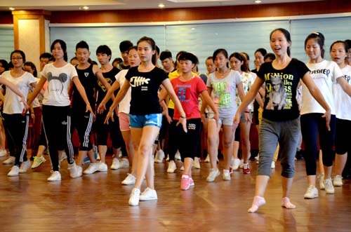学员们在学习跳啦啦操