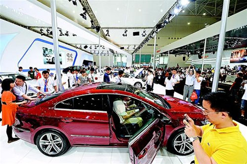 图为:一年一度的车展刺激着消费者的购车欲望。