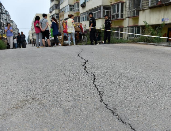 太原,2014年8月28日 太原“楼歪歪”成“楼危危” 小区居民急搬家太原市迎泽区天塔家园小区1号楼下地面的裂缝(8月28日摄)。 当日,记者在发生倾斜的太原市迎泽区天塔家园小区1号楼采访时看到, 楼内居民陆续在工作人员的陪同下进楼搬运各自的重要物品并迅速离开现场,1号楼对面的一栋居民楼不少居民也在加紧搬家。 8月26日,太原市迎泽区天塔家园小区1号楼居民发现室内墙体出现多条裂缝,整座楼房向后明显倾斜。目前,楼内居民已被全部疏散到安全区域,调查善后工作正在进行。太原市相关部门已初步鉴定,天塔家园小区1号楼属于危险房屋。太原市要求,由迎泽区政府聘请相关专业部门实地进行勘测,出具专业鉴定报告,查明隐患原因。