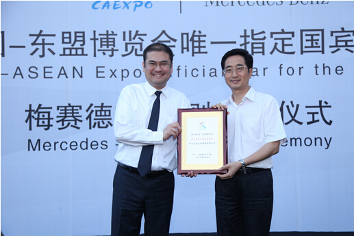 4日,2014中国-东盟博览会指定国宾接待用车交车仪式在南宁国际会展中心举行。梅赛德斯-奔驰继2013年后,再次成为中国-东盟博览会唯一指定国宾接待用车。