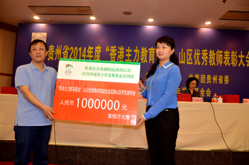 香港主力电器制品有限公司向贵州省青少年发展基金会捐赠100万元