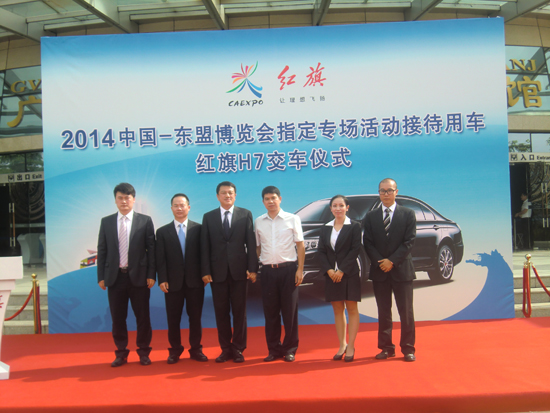 中国—东盟博览会秘书处副秘书长黄平西在交车仪式上说,2014年是中国—东盟合作新十年的开端、共建21世纪海上丝绸之路的开局之年,选择与红旗合作,既是对民族自主品牌的高度认可和充分信任,也是为弘扬中国民族汽车品牌搭建推介展示平台。他表示,相信红旗H7作为一汽轿车高端品牌,荣担本届博览会指定专场活动接待用车,必将为第11届博览会与会的东盟各国贵宾及客商提供安全、贴心、周到的高品质服务,展示中国“国车”品牌风范。