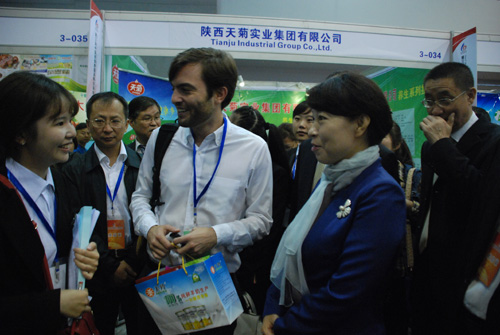 陕西省副省长王莉霞在跨采会展馆与采购商交谈